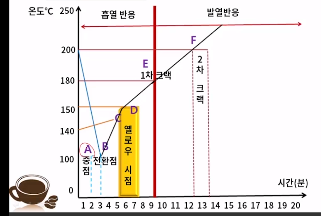 A중점: 투입온도=원두내부의 온도가 같은 시점