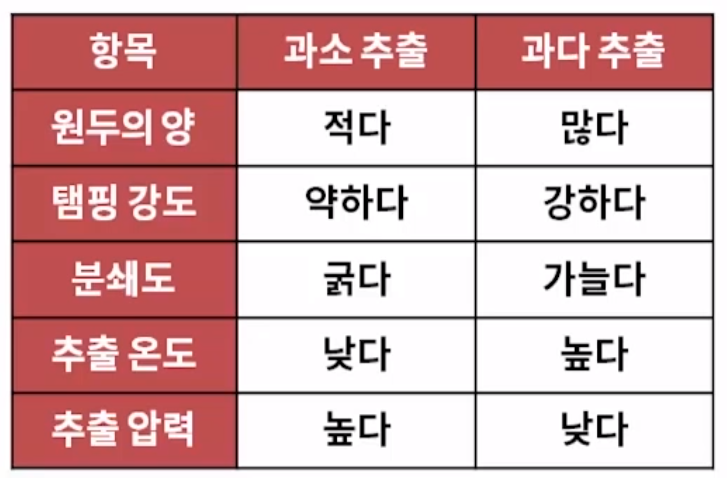 가장 많이 실수하는 부분이 원두의 양, 탬핑 강도, 분쇄도 등임