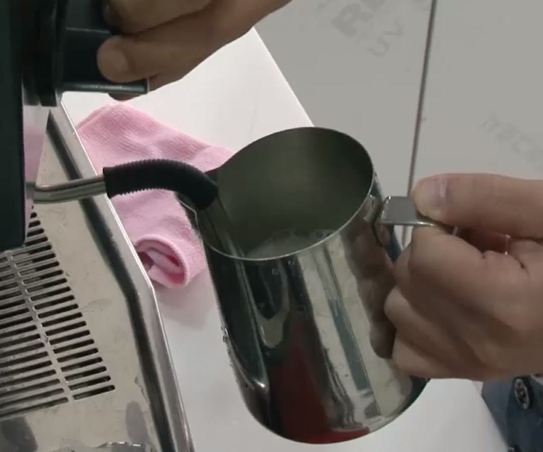 스팀피쳐의 1/4이상 우유를 넣어야 함. 우유를 데울 때는 가열취 때문에 70도가 넘어가게 해서는 안됨