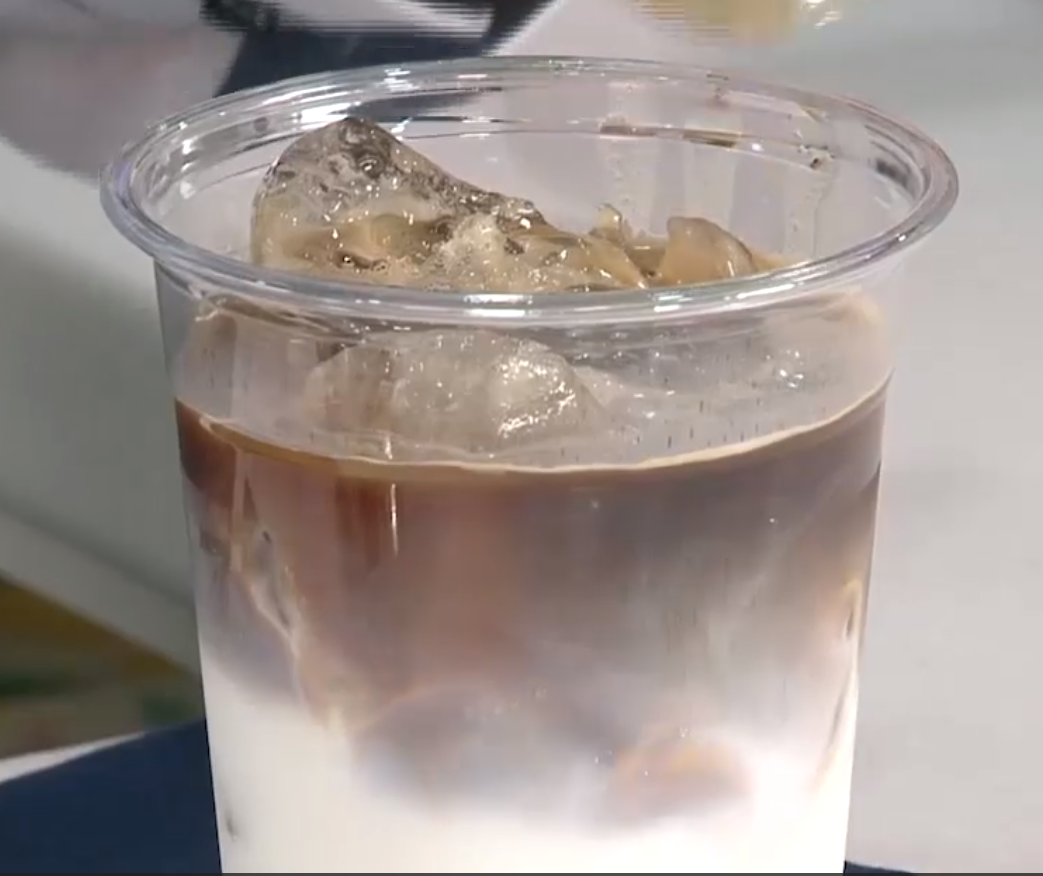 얼음이 준비된 잔에 우유를 따라주며, 우유의 양에 따라 단맛을 조절하게 됨