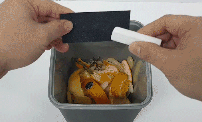 주저하지 말고 음식물쓰레기통 위에 가루를 뿌려주시면 되겠습니다.