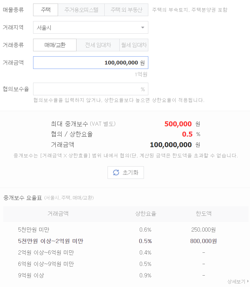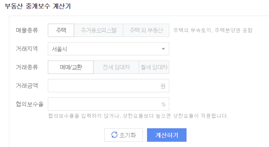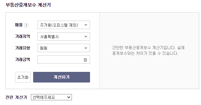 네이버와 마찬가지로 다음에서도 부동산 중개수수료 자동 계산기를 제공하고 있습니다.