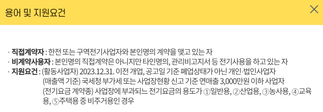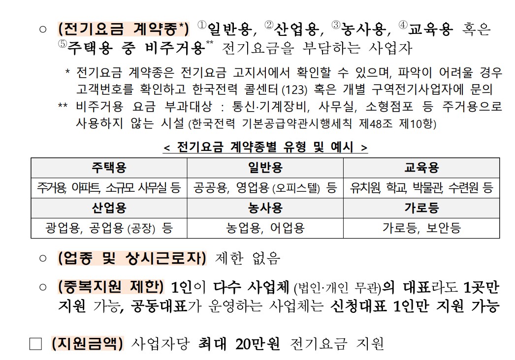 이번 전기 요금 지원 혜택은 특히 영세한 상인 분들을 위해 마련된 것으로 소개될 수 있습니다. 즉, 연 매출규모가 3천만원 이하인 사업장에 해당하는 간이사업자 또는 개인사업자가 대상입니다. 이 조건에 해당되는 분들은 지원 대상이며, 그 속에서도 신청하기까지의 과정과 자격 조건에 대해 명확하게 안내해드리겠습니다.